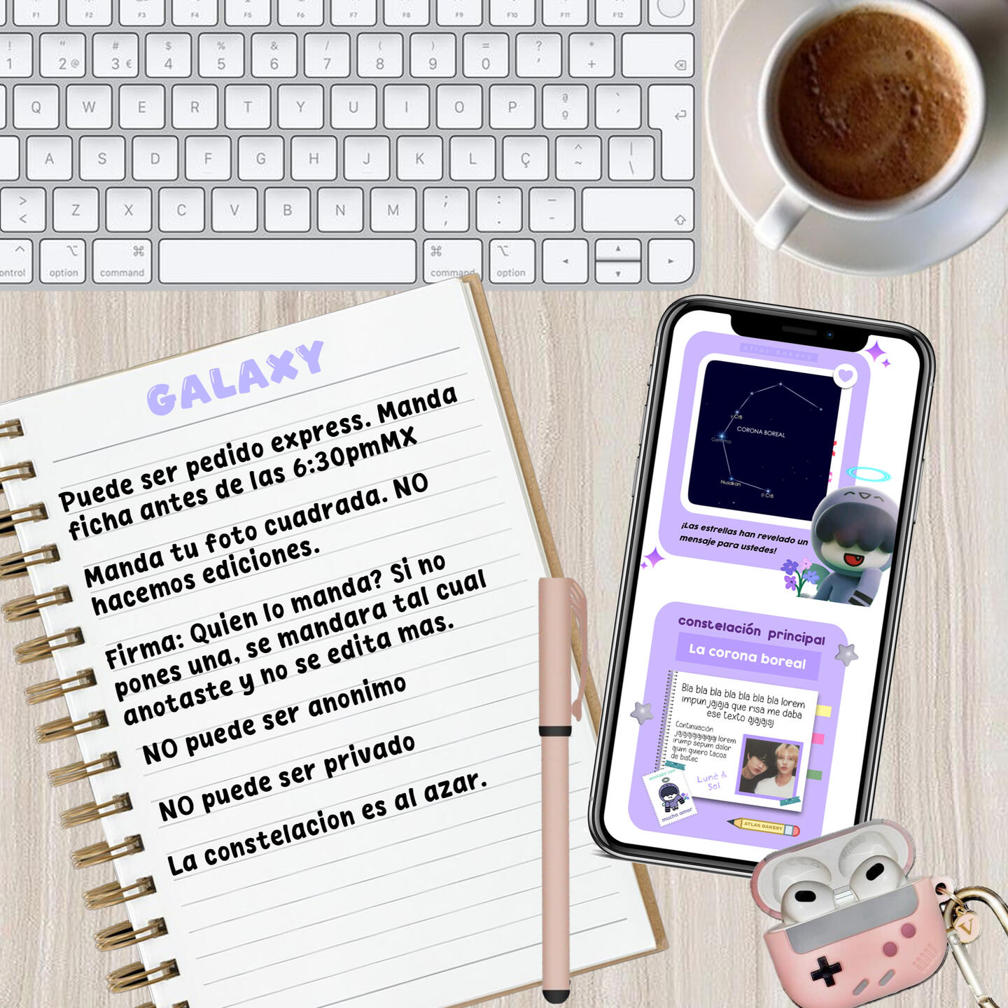➤ Link del grupo: http:// blablabla.groupA continuación marca la hora en la que deseas que se publique (UNICAMENTE lo que deseas ordenar, hora México)☁ Cabina de fotos: 3:30pm
